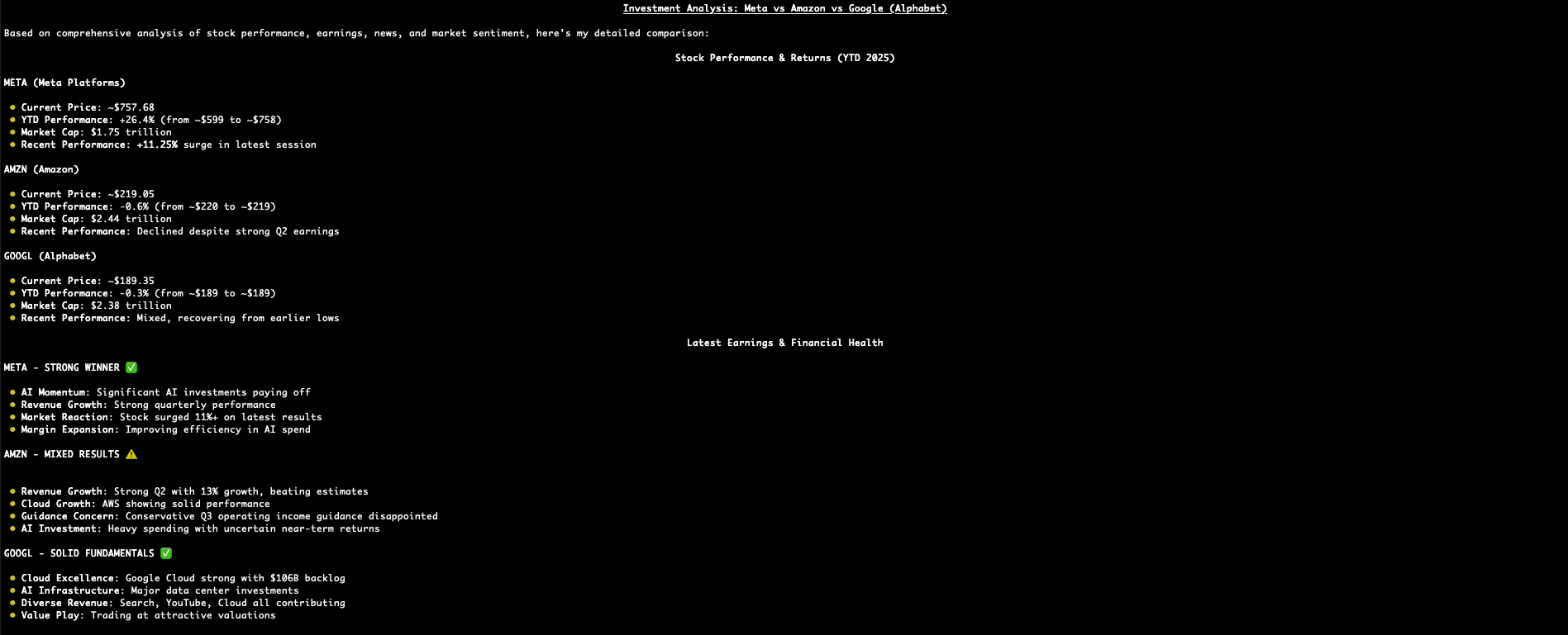 What if you could simply ask a question in plain English, like "How is APPL performing right now compared to AMZN?", and get a structured, reliable answer based on the most up to date information?